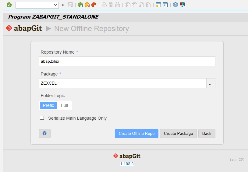 프로그램 이름은 ZABAPGIT_STANDALONE 을 추천합니다.